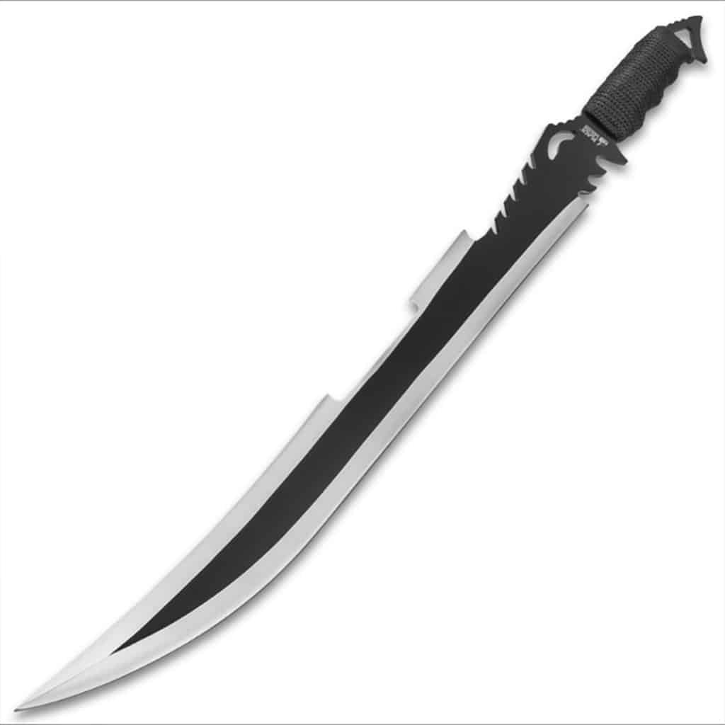 An evil looking weapon with the nibble to back it up, Black Legion’s Death Stalker Sword dribbles with dull, agonizing style and fierce cutting power. The blade threat is produce from a solitary piece of extreme tempered steel, cover in a dismal dark completion that highlights its fiendish savagery. Just the painstakingly sharpen edges of the Demise Stalker’s 18 1/2″ cutting edge are allow to remain uncover, yielding an emotional visual difference that immaculately supplements the edge’s smooth lines and sensitive curve. Barbed, tooth like pattern embellishments between the cutting edge and deal with adroitly propagate the Death Stalker’s depressing stylish theme.